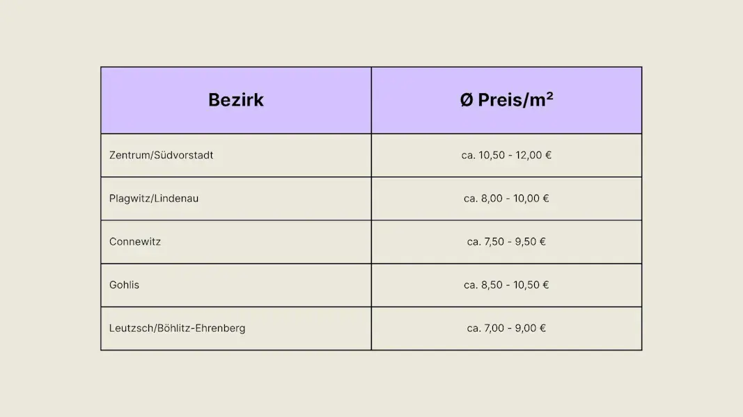 Wer günstige Wohnungen in Leipzig sucht, sollte Leutzsch oder Böhlitz-Ehrenberg ins Auge fassen. Diese Stadtteile sind weniger zentral, dafür aber ruhiger und günstiger. Gute Anbindungen ans Zentrum und Naherholungsgebiete machen diese Bezirke attraktiv.