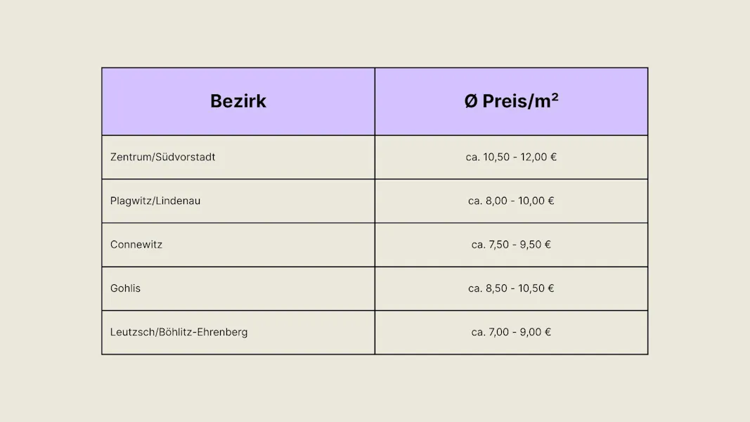 Wer günstige Wohnungen mieten will, sollte sich in Leutzsch oder Böhlitz-Ehrenberg umsehen. Diese Stadtteile bieten preiswerte Mietwohnungen und eine gute Infrastruktur bei gleichzeitig ruhiger Lage.